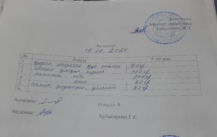 2022-2023 оқу жылына арналған ас - мәзірі