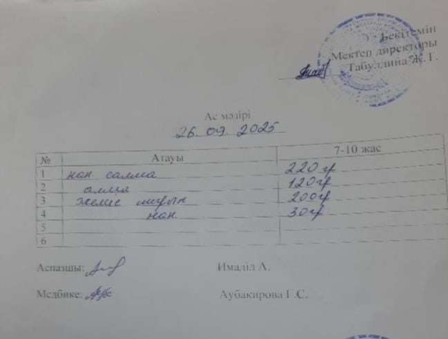 2022-2023 оқу жылына арналған ас - мәзірі