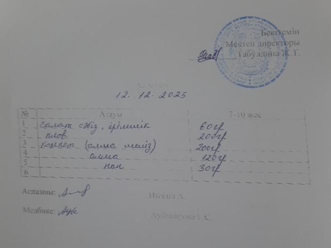 2022-2023 оқу жылына арналған ас - мәзірі