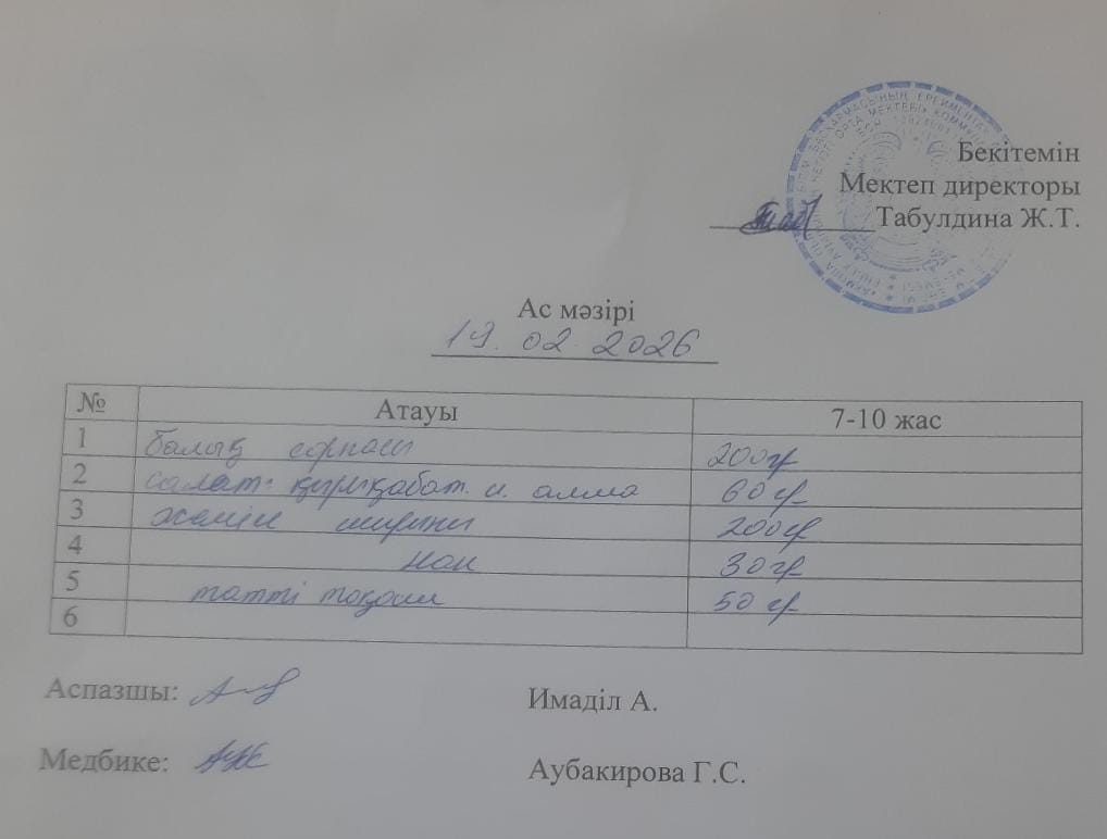 2022-2023 оқу жылына арналған ас - мәзірі