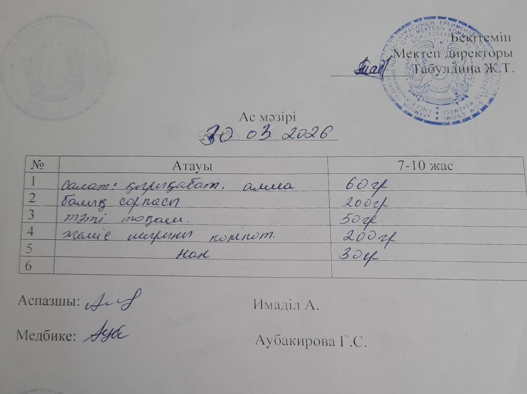 2022-2023 оқу жылына арналған ас - мәзірі