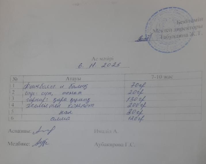 2022-2023 оқу жылына арналған ас - мәзірі