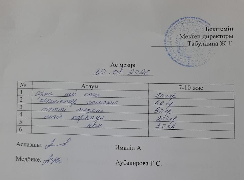 2022-2023 оқу жылына арналған ас - мәзірі
