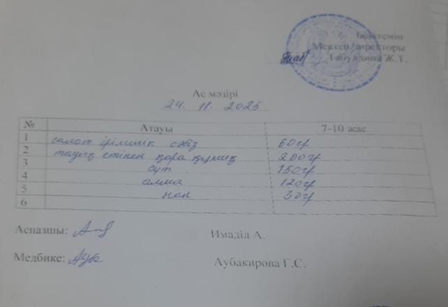 2022-2023 оқу жылына арналған ас - мәзірі