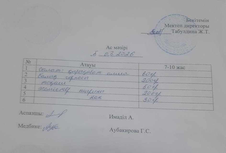 2022-2023 оқу жылына арналған ас - мәзірі