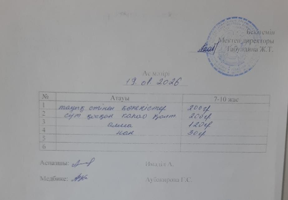 2022-2023 оқу жылына арналған ас - мәзірі