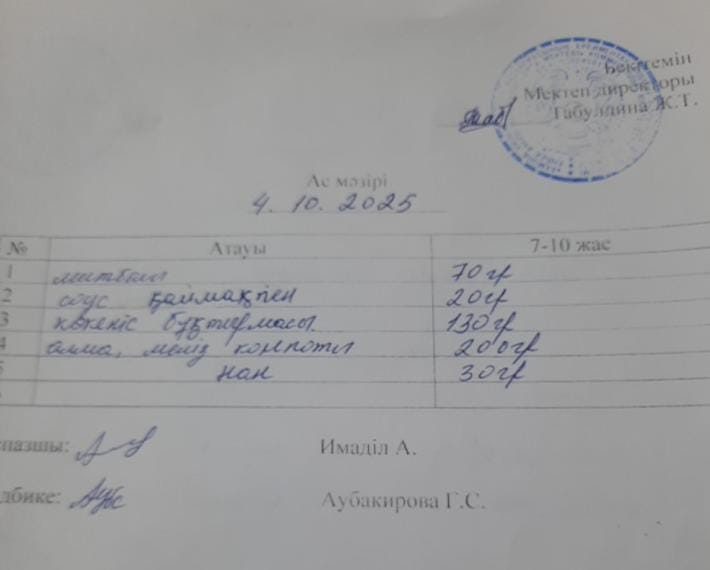 2022-2023 оқу жылына арналған ас - мәзірі