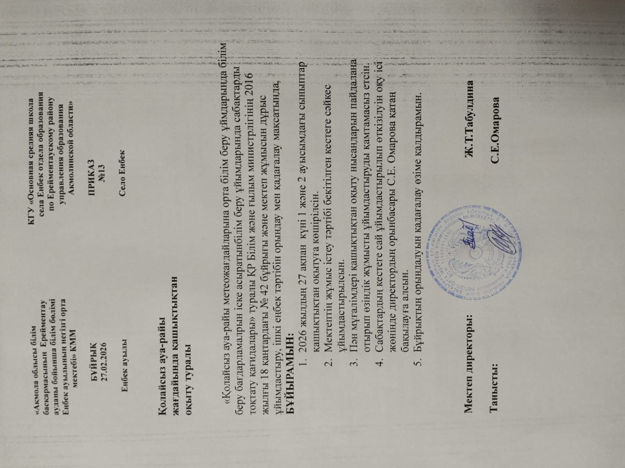 Қолайсыз ауа-райы жағдайында қашықтықтан оқыту туралы