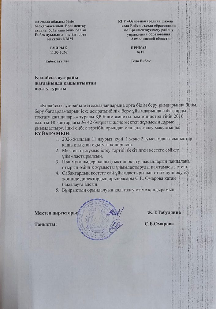 КГУ "Основная средняя школа села Енбек отдела образования по Ерейментаускому району управления образования Акмолинской области"